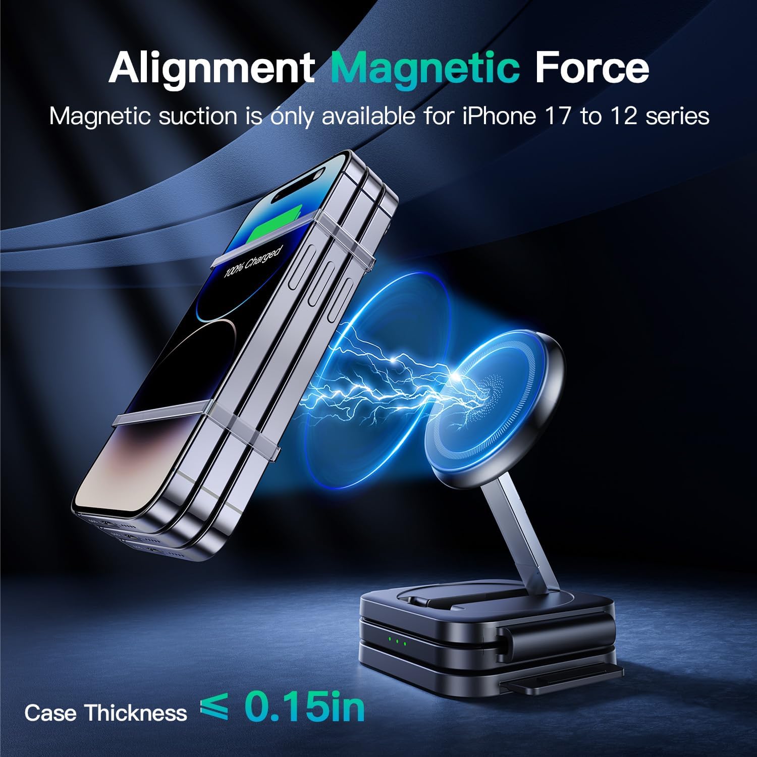 🧲[𝗦𝘁𝗿𝗼𝗻𝗴 𝗠𝗮𝗴𝗻𝗲𝘁𝗶𝗰 𝗔𝗹𝗶𝗴𝗵𝗺𝗲𝗻𝘁] The strong magnetic force ensures perfect alignment every time for efficient charging of your multiple Apple devices. The secure Magsafe hold keeps Apple devices frmly in place, making it ideal for travel, bedside, or desk use. This multi-device wireless charger eliminates the guesswork and frustration of improper placement that prevails other charging stations.