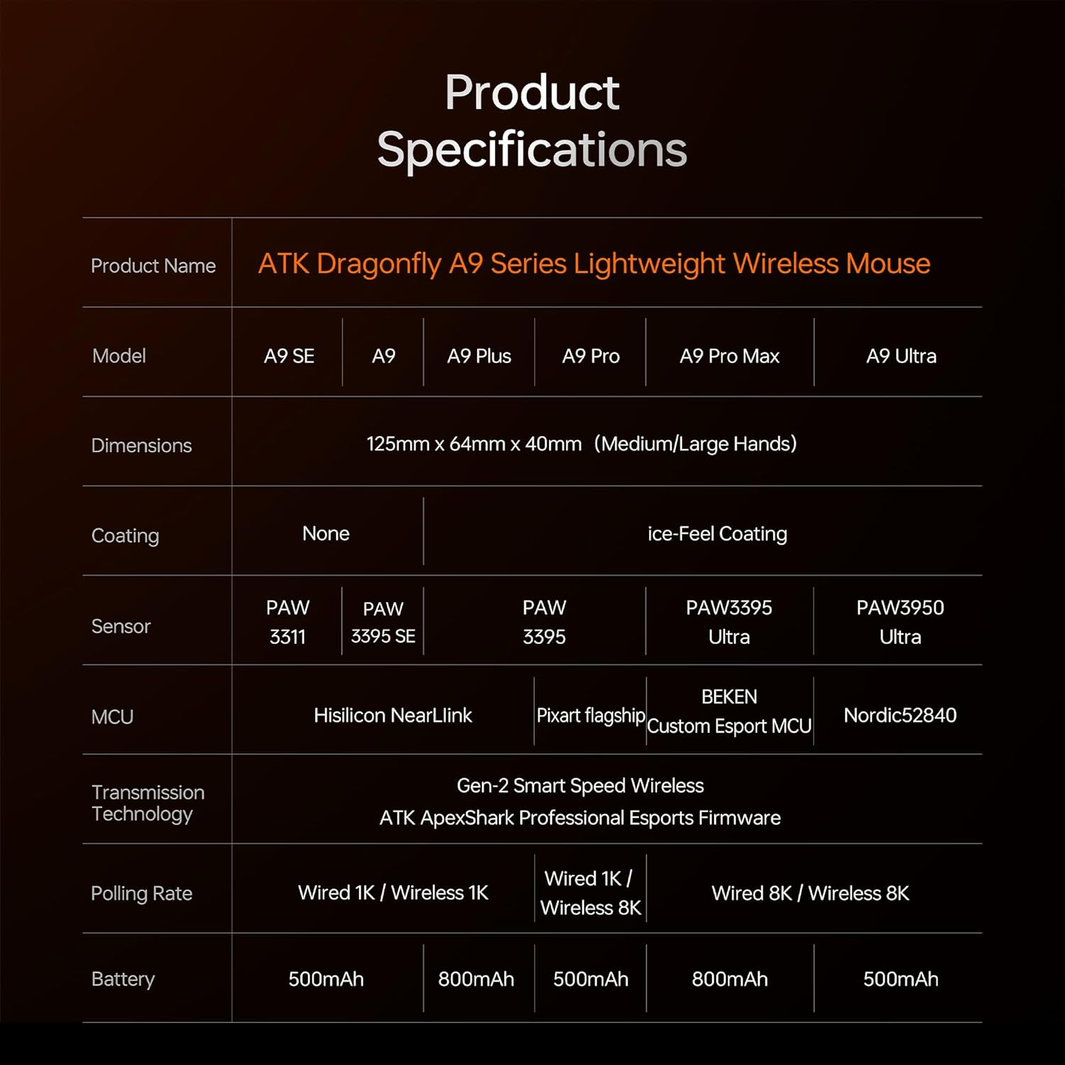 ENGINEERED FOR ESPORTS: Gen-2 Smart Speed Wireless with ATK ApexShark firmware, paired with HiSilicon, PixArt, BEKEN, or Nordic MCUs for pro-level stability.