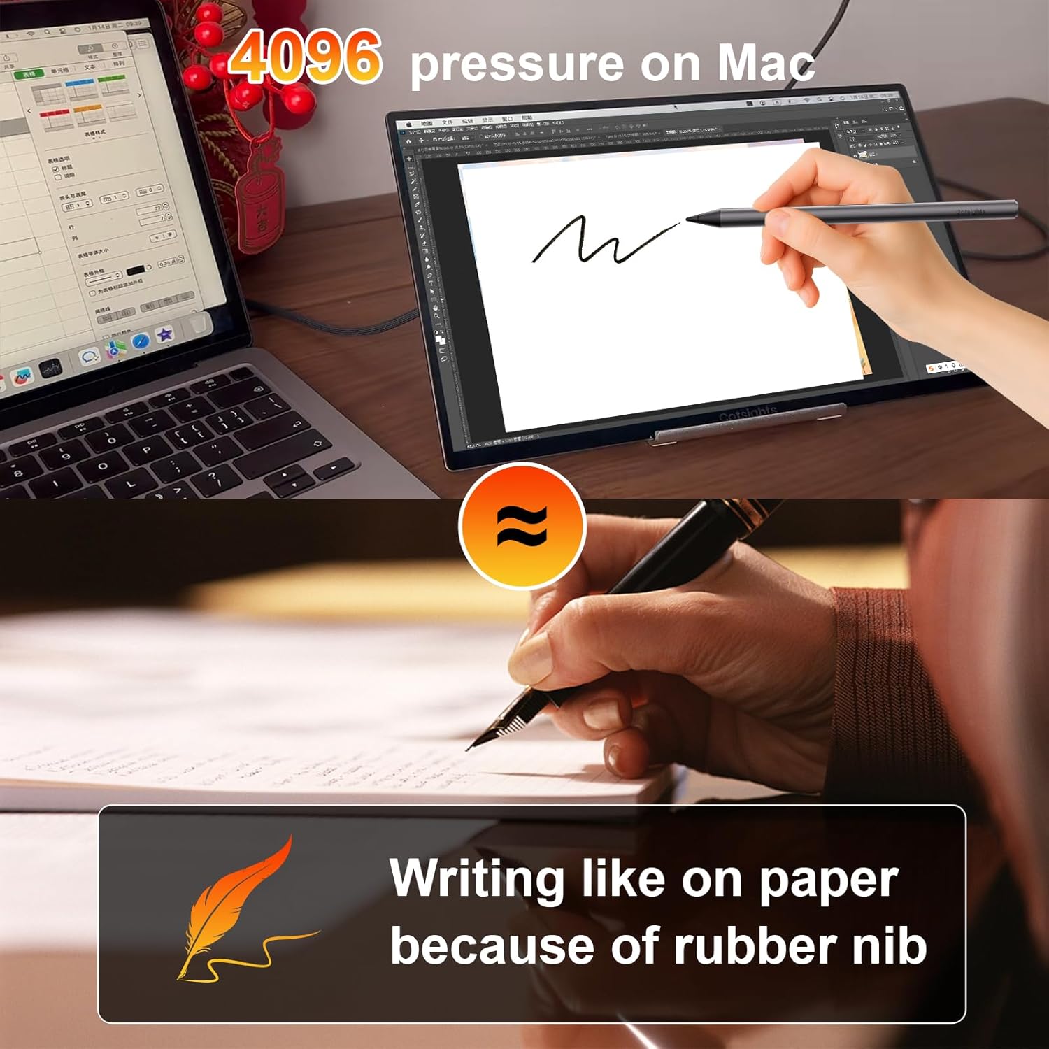 【USI stylus Included & Standby Clock Display】Catsights portable monitor touchscreen features 4,096-level pressure sensitivity (compatible with Windows & macOS), can delivers precise brush strokes, line weight variation, and eraser pressure control. Auto-adjusts pen pressure for natural writing and drawing. Optimized the portable gaming monitor for Adobe Photoshop, CLIP STUDIO PAINT, and other major drawing.Transform your laptop monitor extender. When idle: the Standby Clock Mode automatically turns it into a sleek desktop clock.