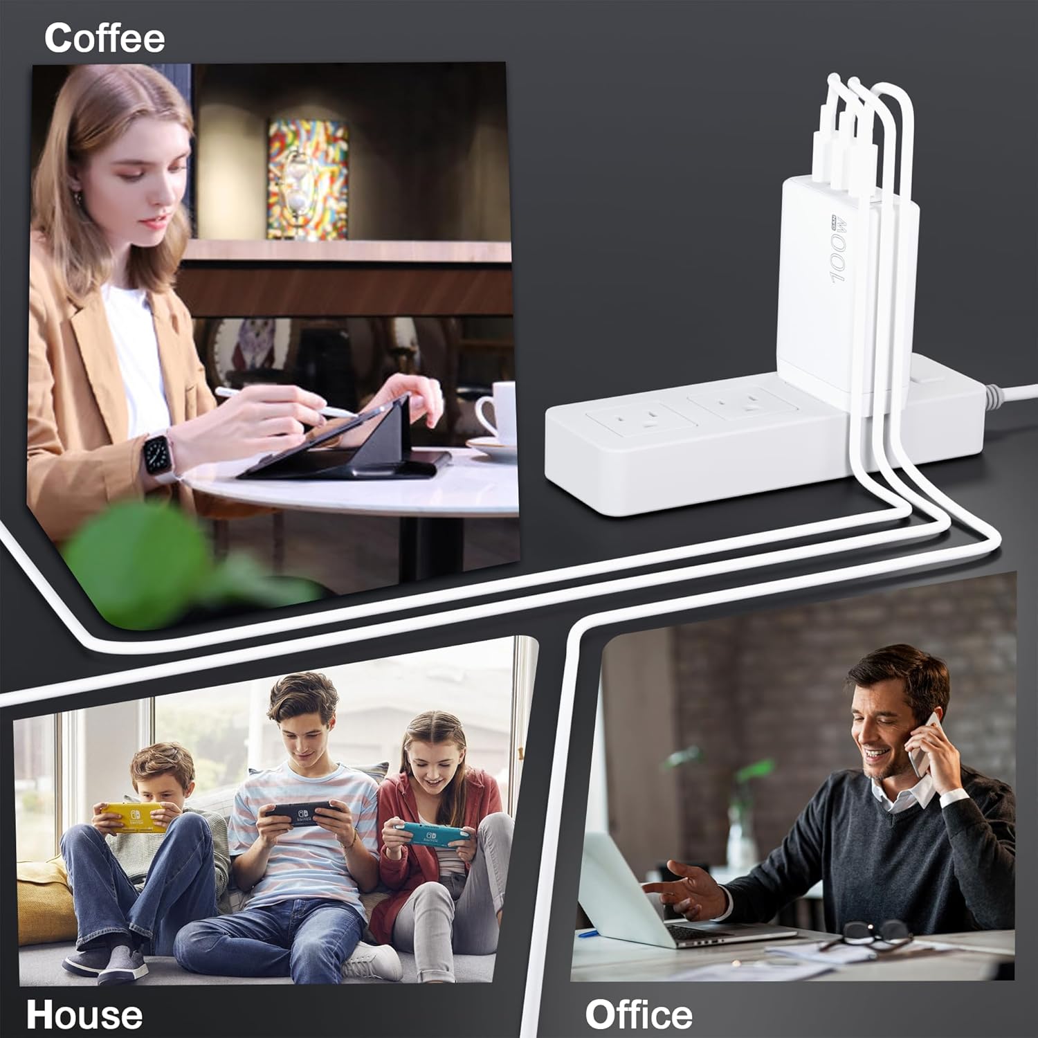 Fast charging: 100-watt combined USB Power Delivery PD 3.0, 3 USB-C ports (100 watt + 100 watt + 23 watt, up to 100W single) and 1 USB-A ports (18 watt each, up to 18 watt single), conveniently charge 3 USB-C enabled devices (including a laptop) and 1 smartphones