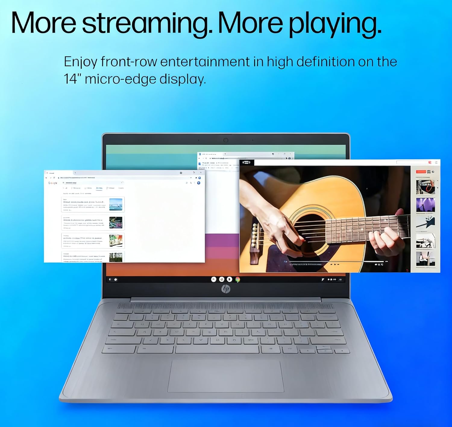 8 reviews for HP 14″ Chromebook 2025 Model, Intel Celeron N4500, 4GB RAM, 64GB eMMC + 64GB USB Flash Drive, Wi-Fi 6 & Bluetooth 5.3, 1366×768 Anti-Glare HD Display, Chrome OS, for Students & Everyday Use, LE Bundle