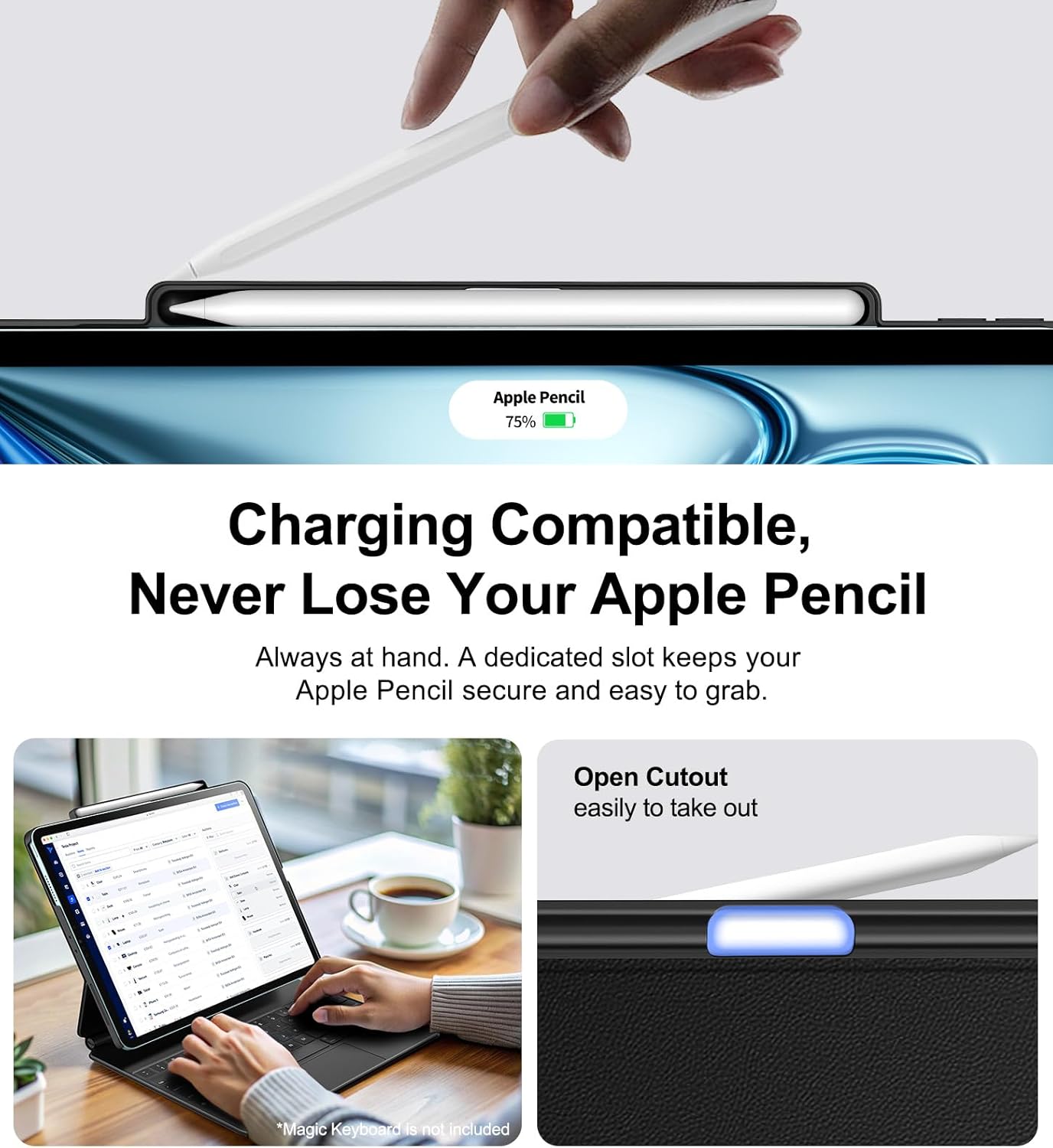 Magic Keyboard & Apple Pencil 2 Compatible: Seamlessly works with the Apple Magic Keyboard, allowing pass-through charging and magnetic attachment for the Apple Pencil without removing the case.