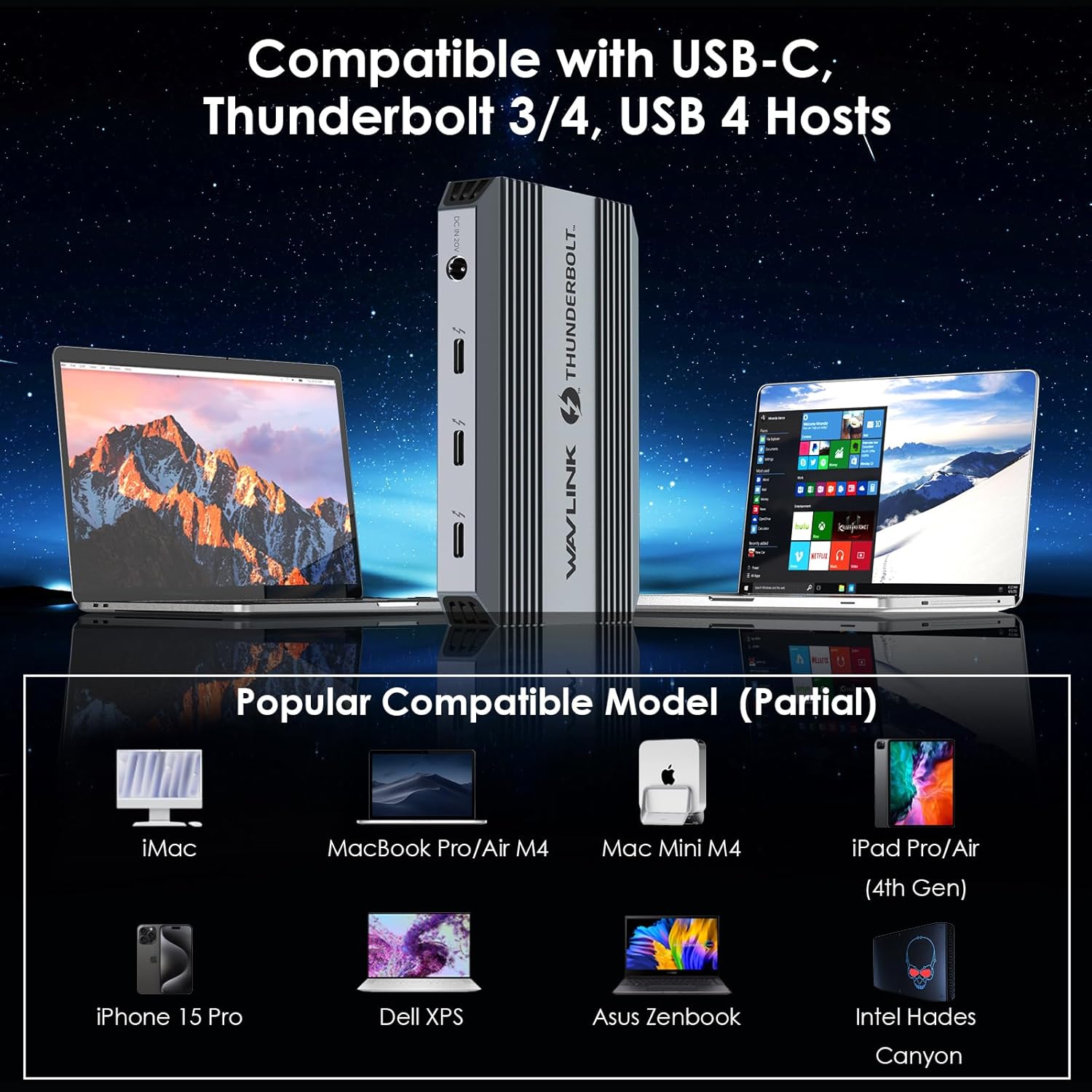 13 reviews for Thunderbolt4 Hub Dual Monitor, WAVLINK Thunderbolt4 Hub with 3* Thunderbolt 4 Port, 100w PD in, USB-A 10Gb, for MacBook Pro/Air M1 M2 M3, Thunderbolt 4/3 Laptop