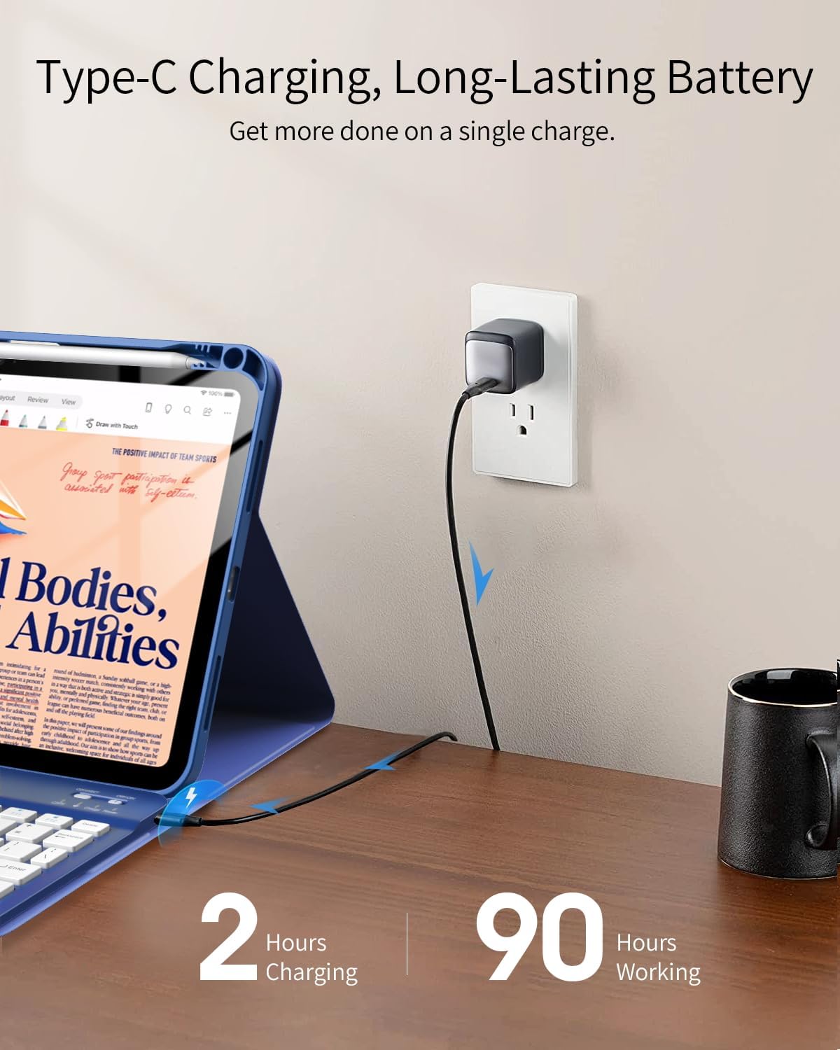 Long Life Battery: The iPad 11th Generation keyboard case has a built-in 420mA rechargeable battery that could extend battery life, with 2-3 hours full charge, work for more than 90 hours, standby for 90 days