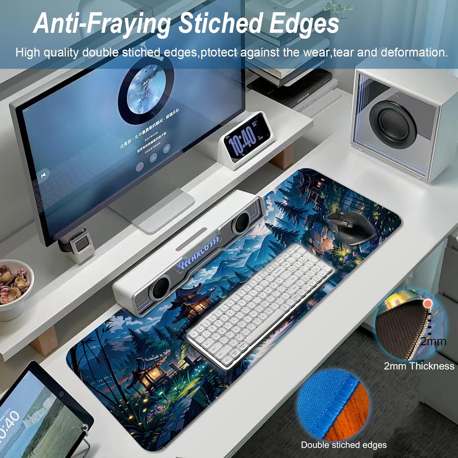 【Large and Extended Size】The size of this XL large mouse pad is 31.5×11.8 inch,which is big enough to fit your full-sized keyboard, mouse, laptop,or other item on the desk,providing more space for professional gaming or office work. Besides,you can also use this extended mouse pad as a desk pad,writing pad,platform protection mat. Keep your desk clean and uncluttered.
