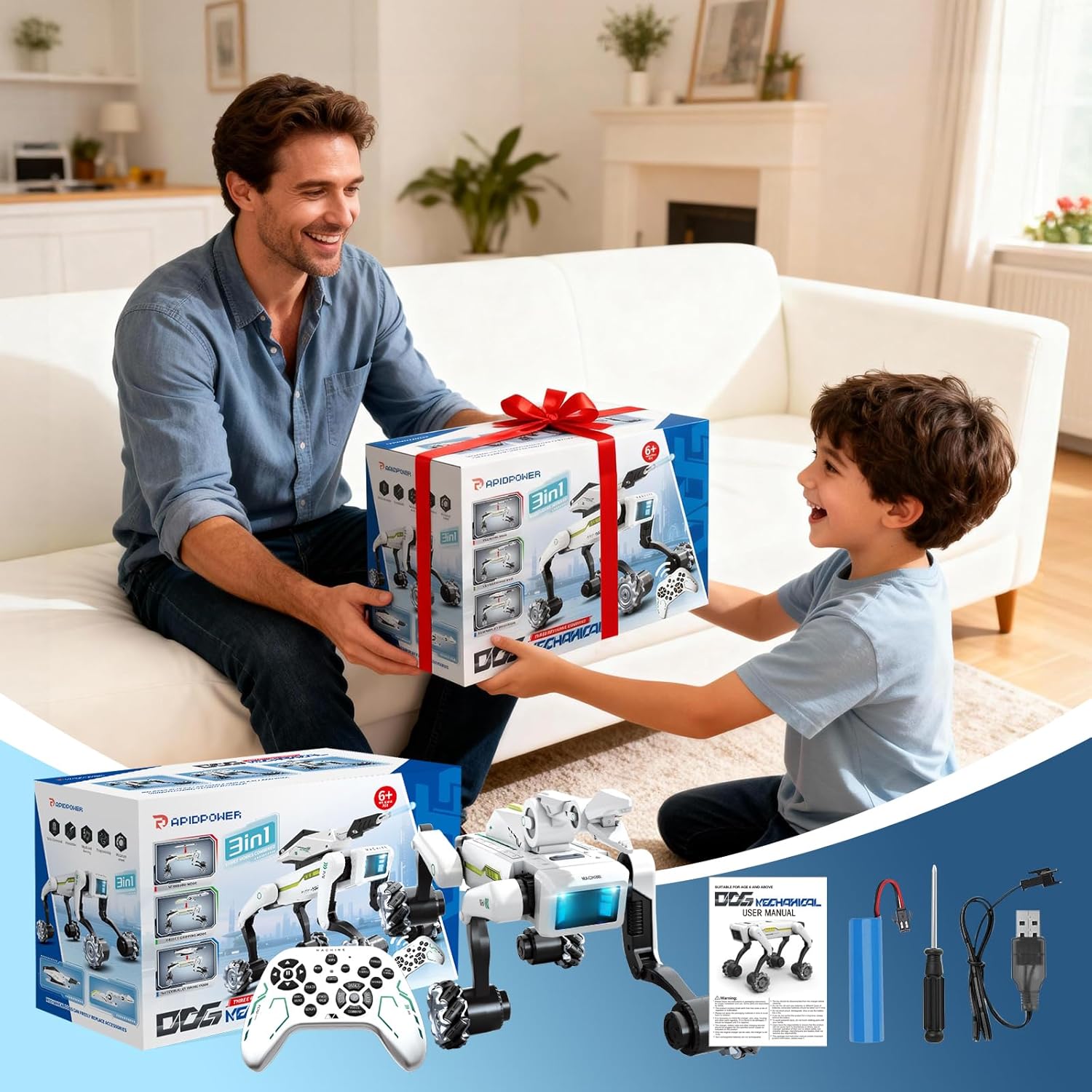 【3-in-1 Transforming Battle Bot & Playful Companion】This isn’t just a robot dog—it’s a versatile action kit! Quickly switch between three exciting modes: the standard agile robot dog, a powerful battle bot equipped with a cannon, or a rugged rover with a functional claw attachment. This variety sparks endless imaginative play, keeping engagement high long after the first play