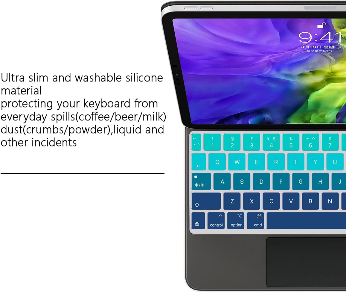 WYGCH Silicone Magic Keyboard Cover Skin for iPad Pro 11 Inch Magic Keyboard(4nd Generation),for iPad Pro 11 Keyboard Protector Accessories-Gradual green