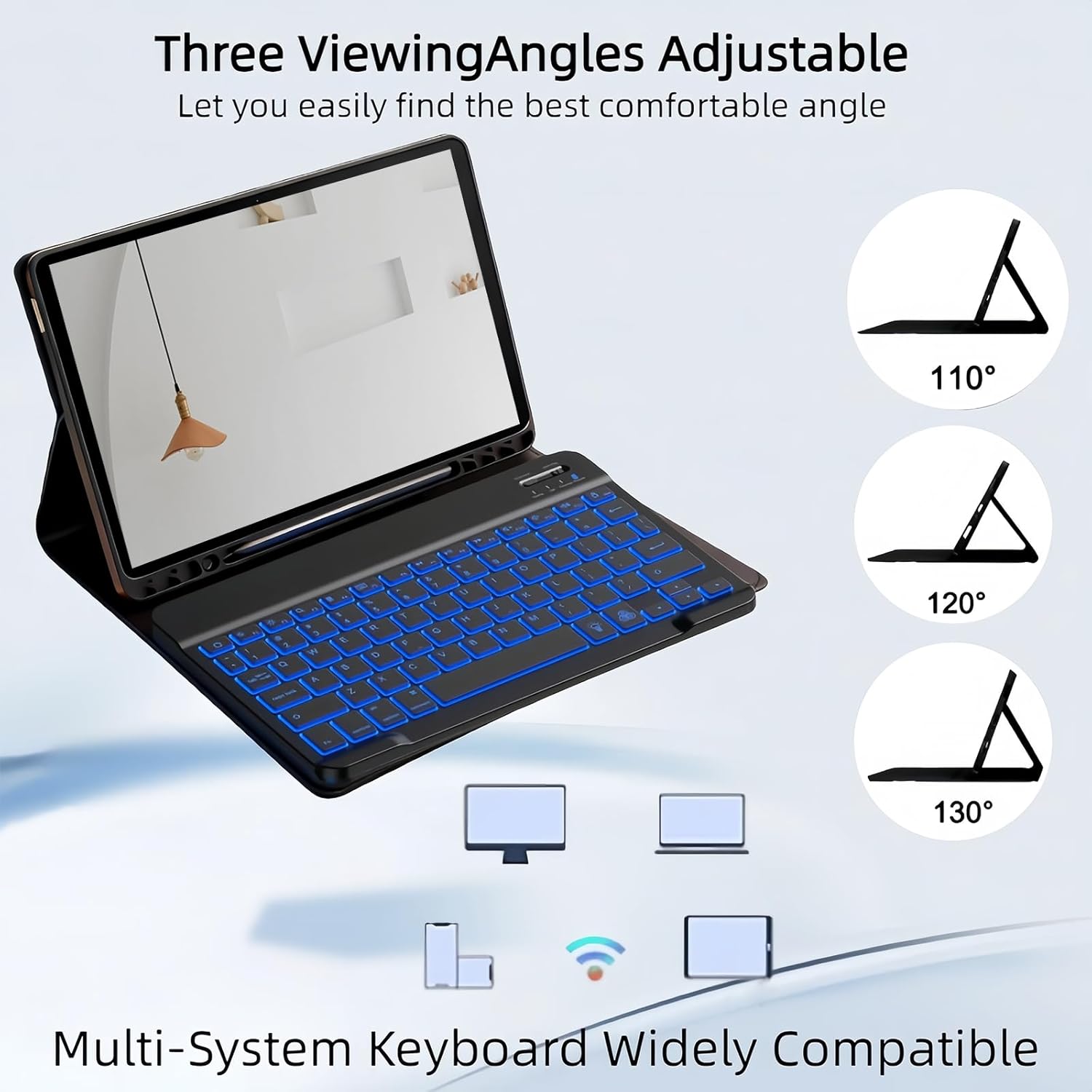 Rainbow Backlight, Multi-Function Keyboard:Compatible with iPad (A16) 11th/10th Gen, featuring 7 RGB rainbow backlight colors. The breathing light backlight mode automatically adjusts, enabling effortless typing in any lighting condition.
